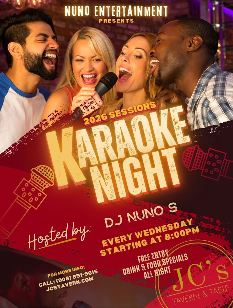🎤✨ It’s a Karaoke Party on Wednesday at JC's Tavern & Table in Union, NJ! ✨🎤
