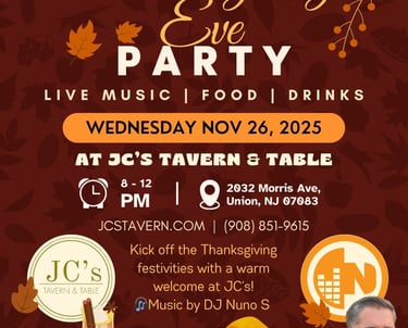 Join us at JCβs Tavern & Table on Wednesday, Nov 26th at 8pm for the ultimate kick-off to your holiday weekend!