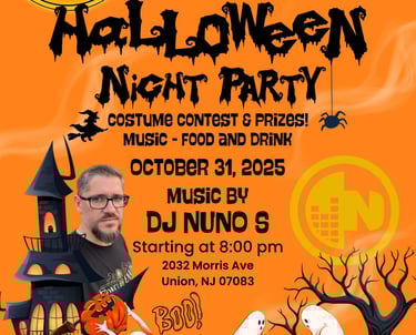 DJ Nuno S will be spinning haunting hits and party anthems starting at 8pm β keeping the energy (and spirits π) alive all night long!