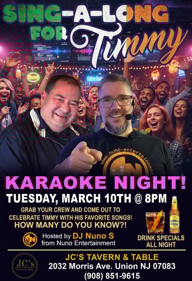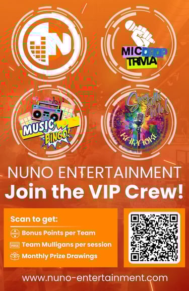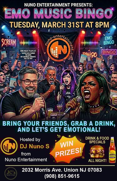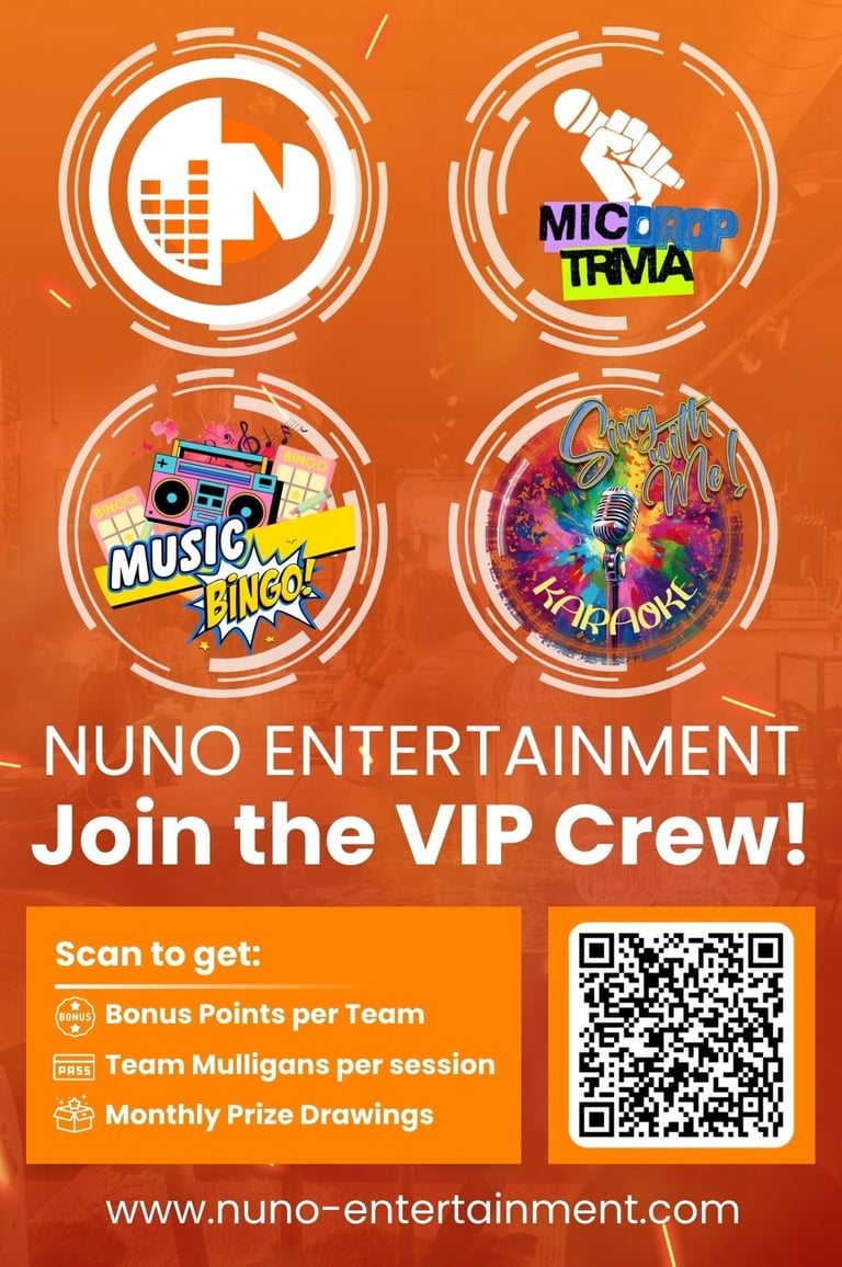 #NunoEntertainment #VIPCrew #KaraokeNight #TriviaNight #MusicBingo #NJNightlife #UnionNJ #LocalFun