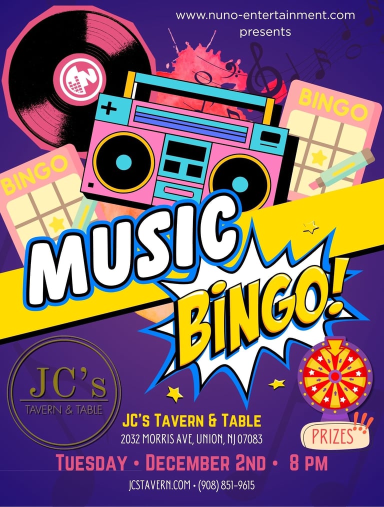 Nuno Entertainment presents Music Bingo β Tuesday, Dec 2 at 8PM!