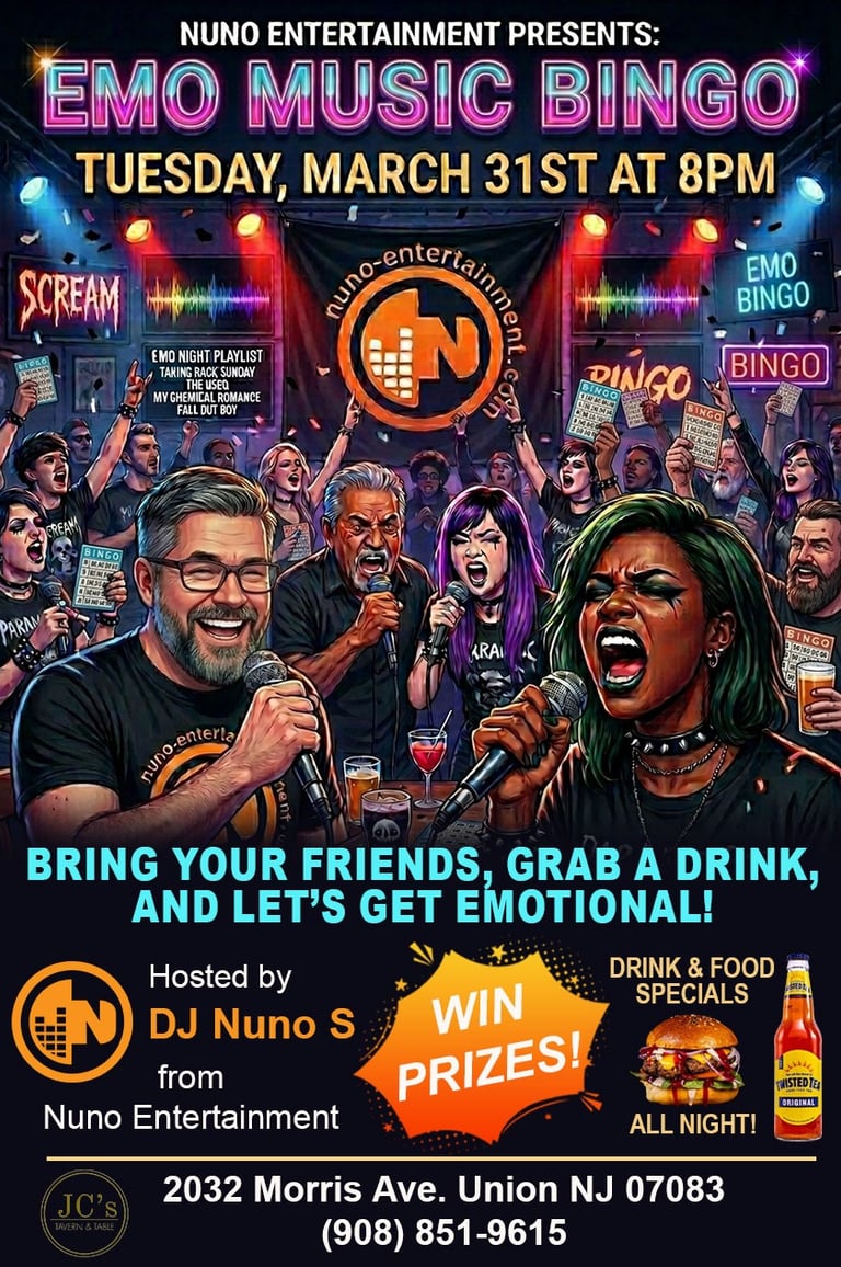 #EmoNight #MusicBingo #JCsTavernAndTable #UnionNJ #PopPunk #EmoVibes